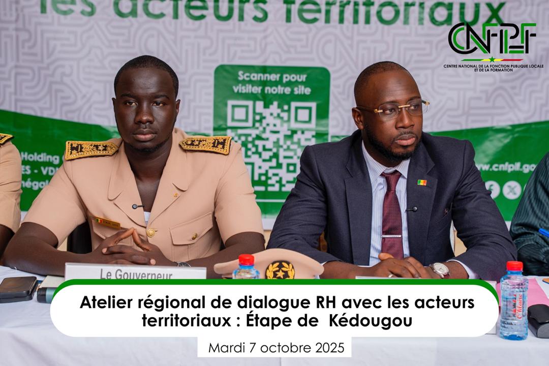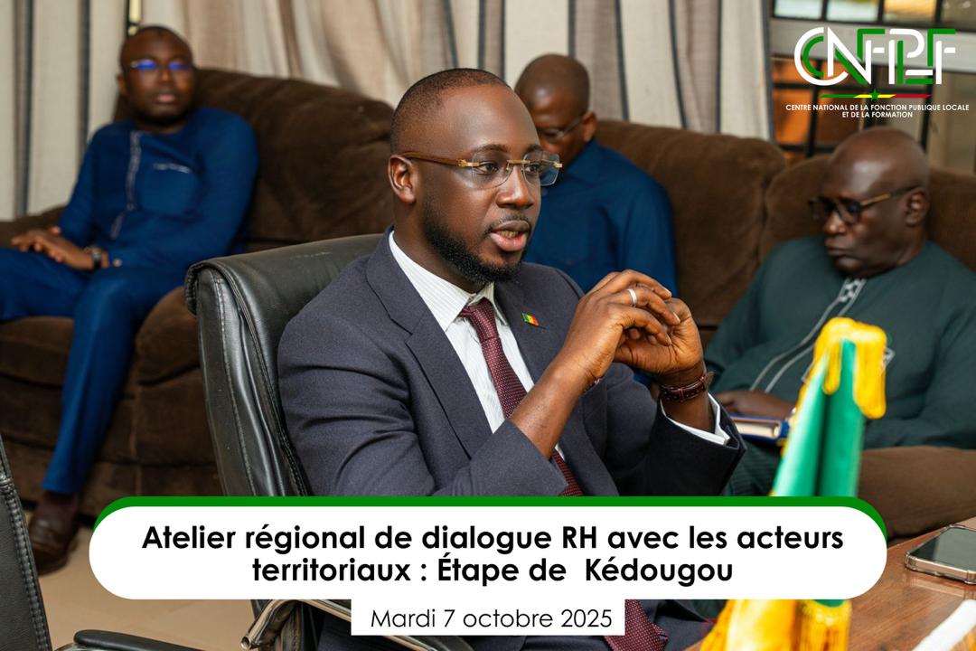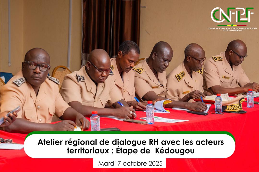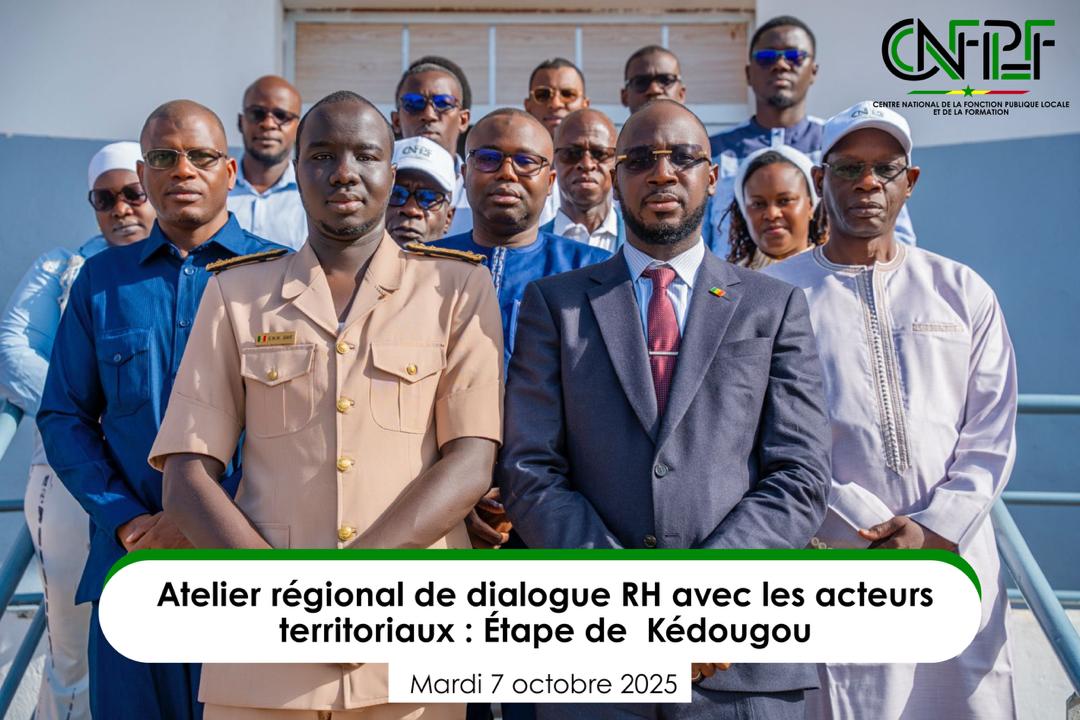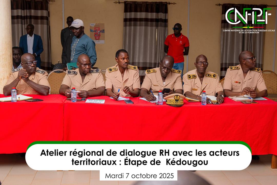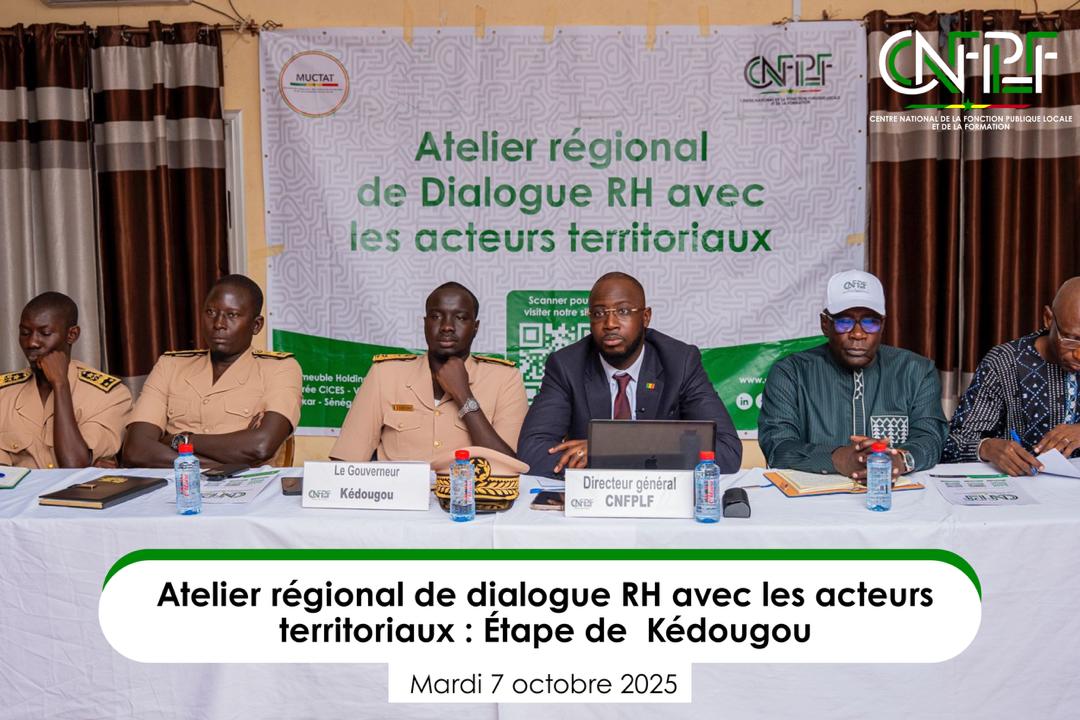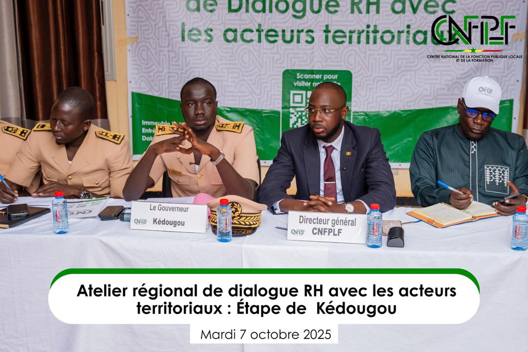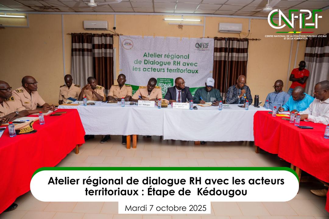 Un « Atelier de dialogue RH avec les acteurs territoriaux » s’est tenu le mardi 7 octobre à Kédougou, mobilisant l’ensemble des parties prenantes de la région, à l’initiative du Centre national de la Fonction publique locale et de la Formation (CNFPLF).