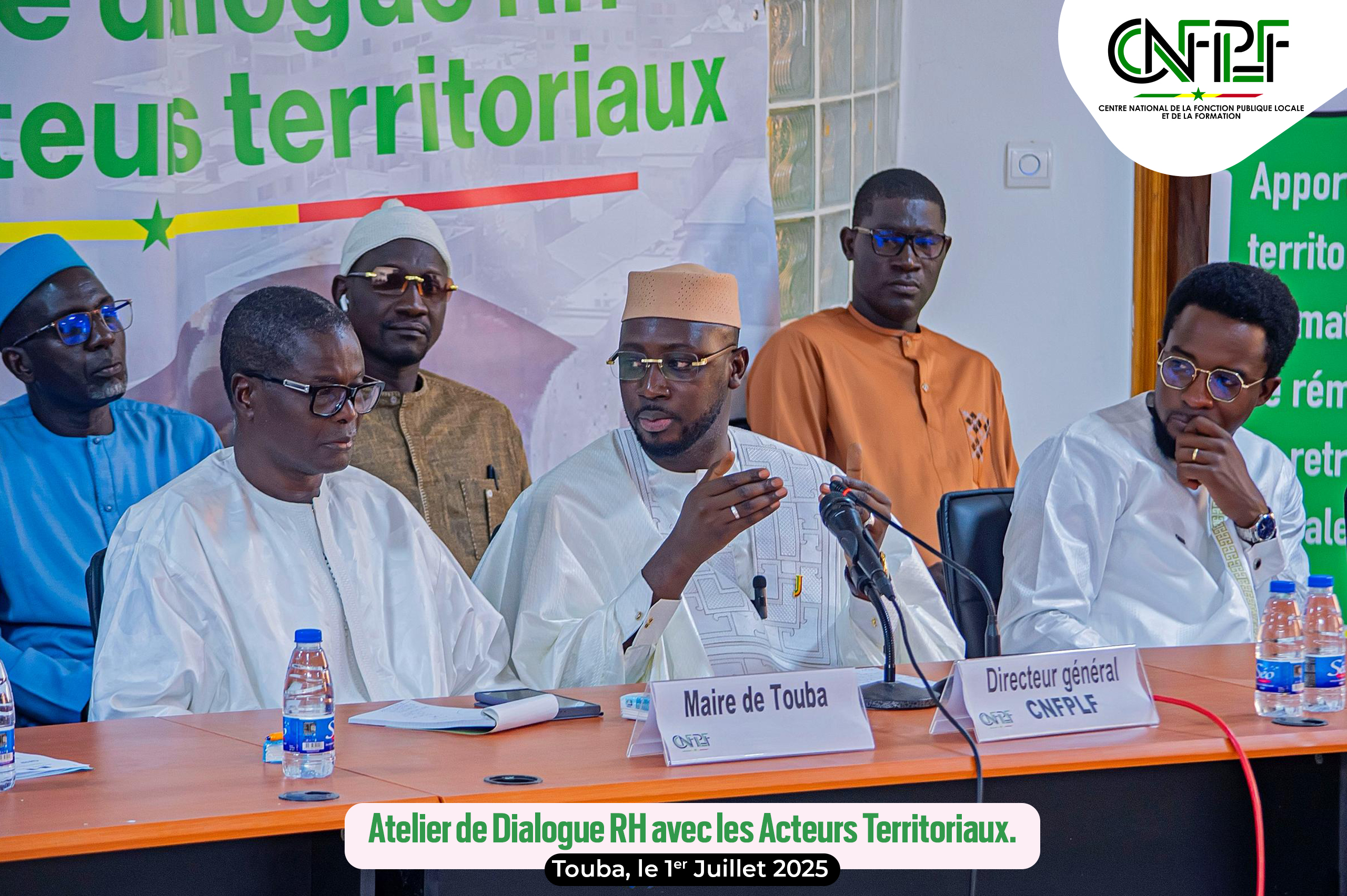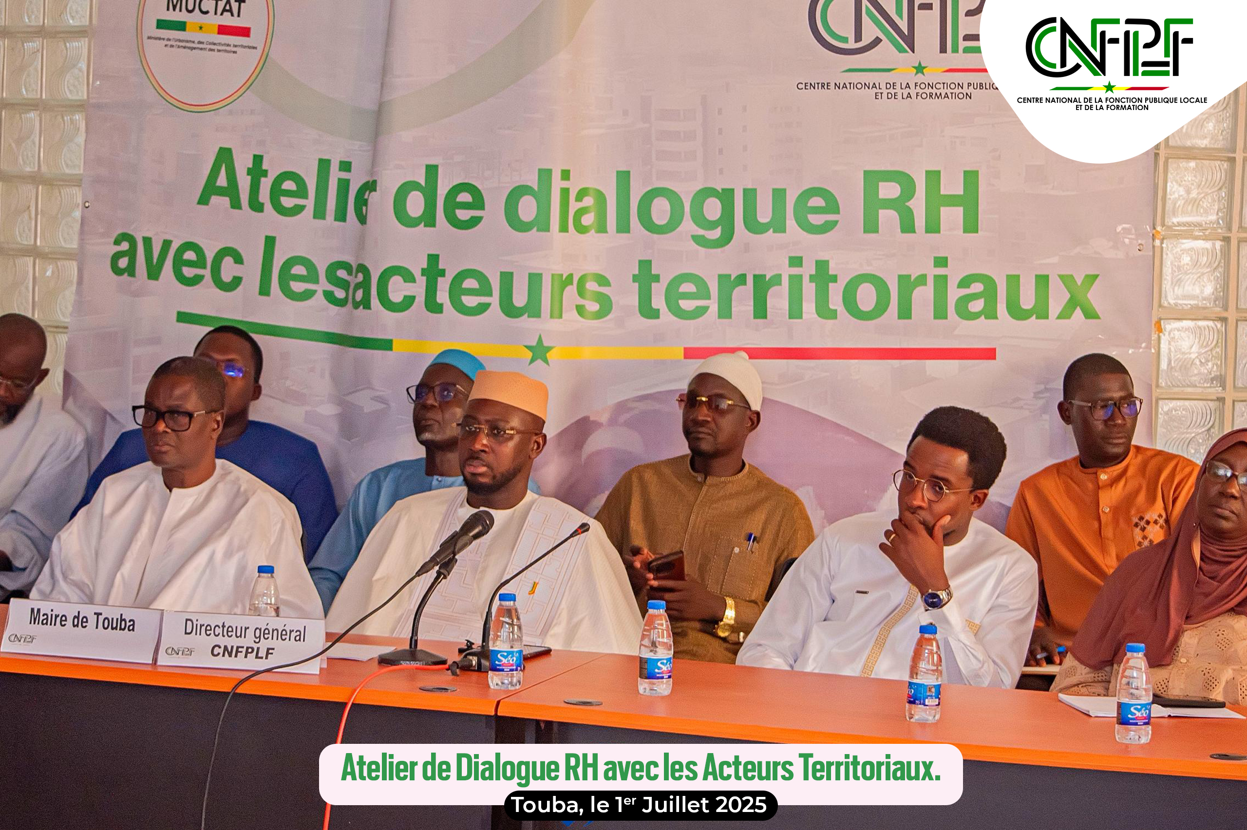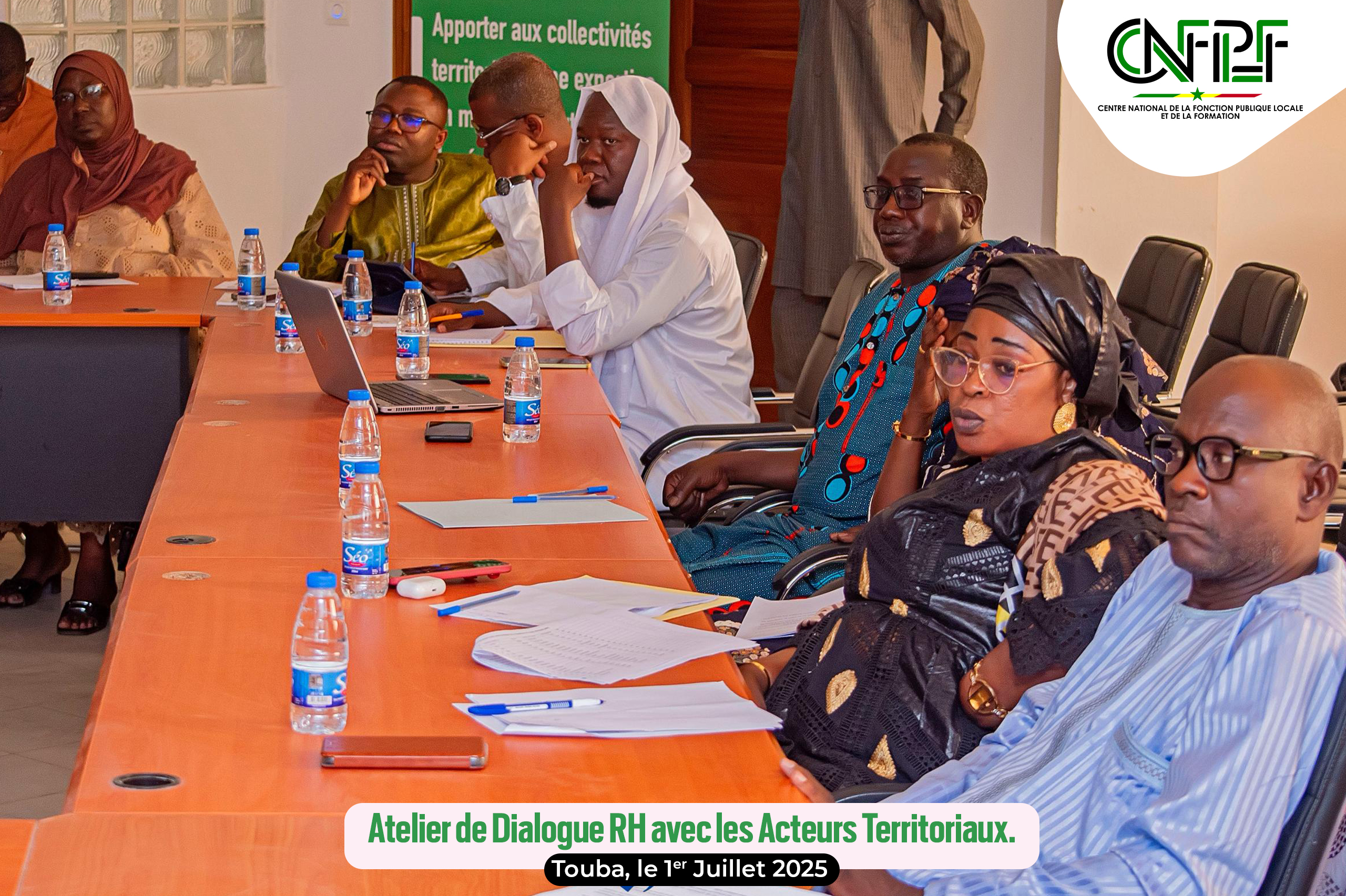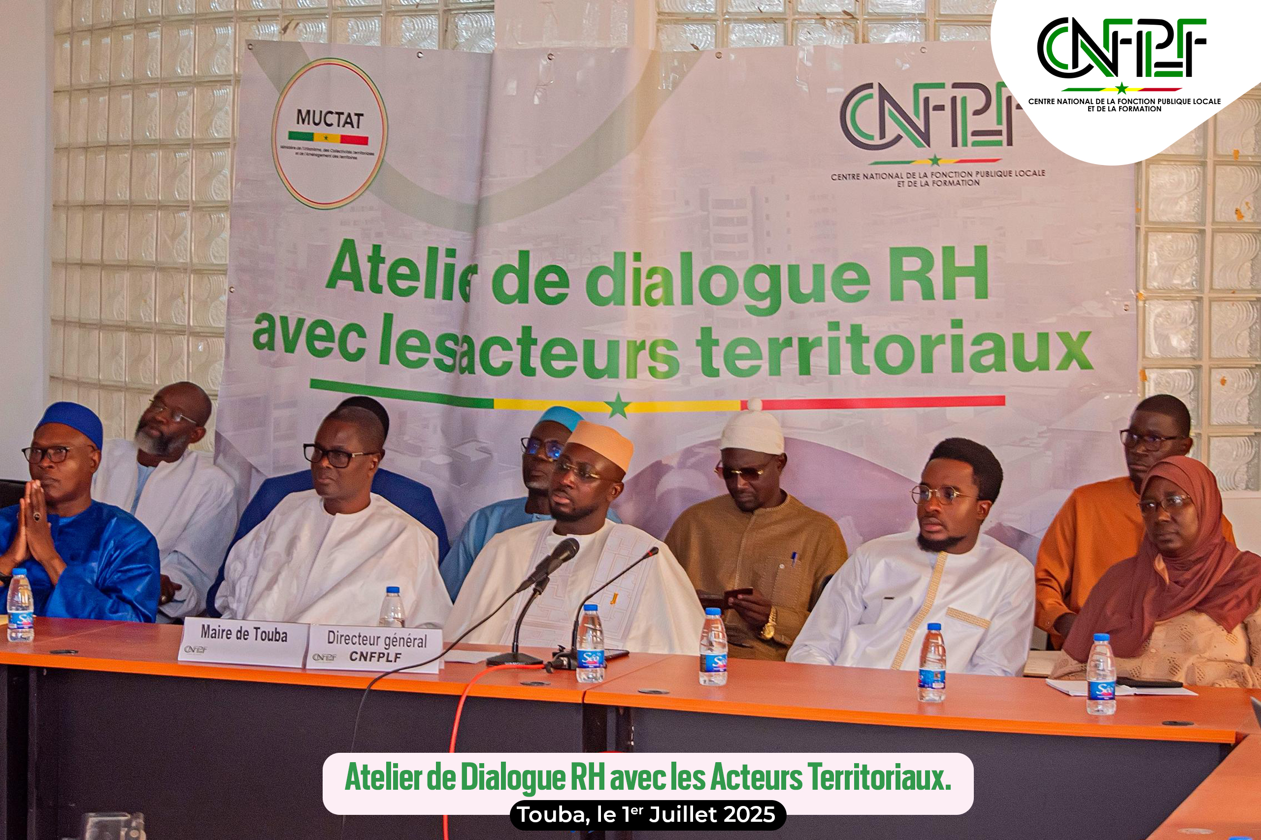 L’équipe du Centre national de la Fonction publique locale et de la Formation (CNFPLF) a tenu, le mardi 1ᵉʳ juillet 2025, une large séance de travail avec les élus et agents de la municipalité de Touba Mosquée, en présence du Maire, Monsieur Abdou Lahat KA.