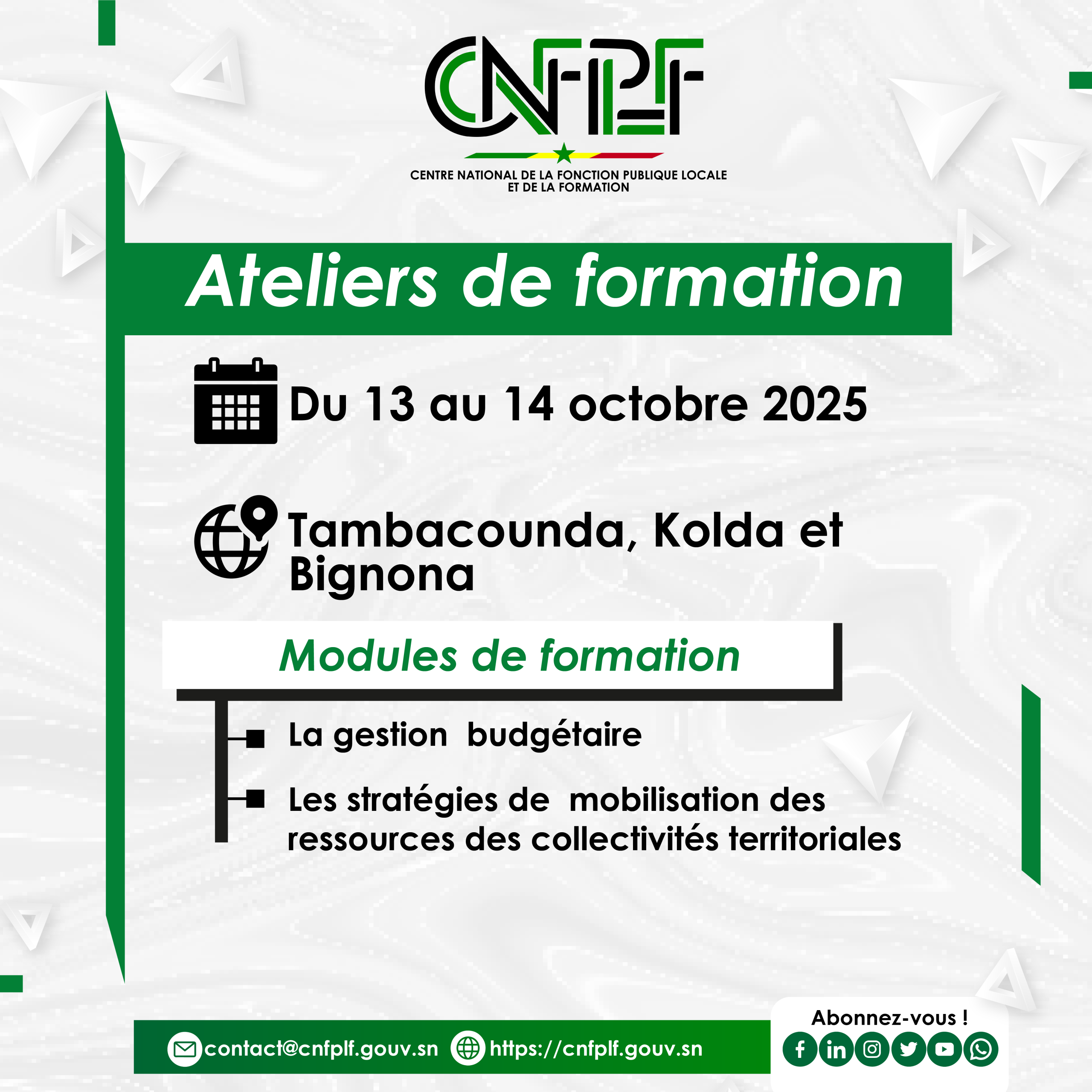 📚 Ateliers de formation du Centre national de la Fonction publique locale et de la Formation (CNFPLF)