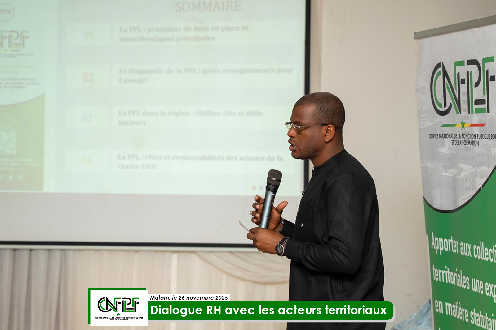 La délégation du Centre national de la Fonction publique locale et de la Formation (CNFPLF) a tenu, le mercredi 26 novembre 2025, un atelier de Dialogue RH avec les acteurs territoriaux de la région de Matam.