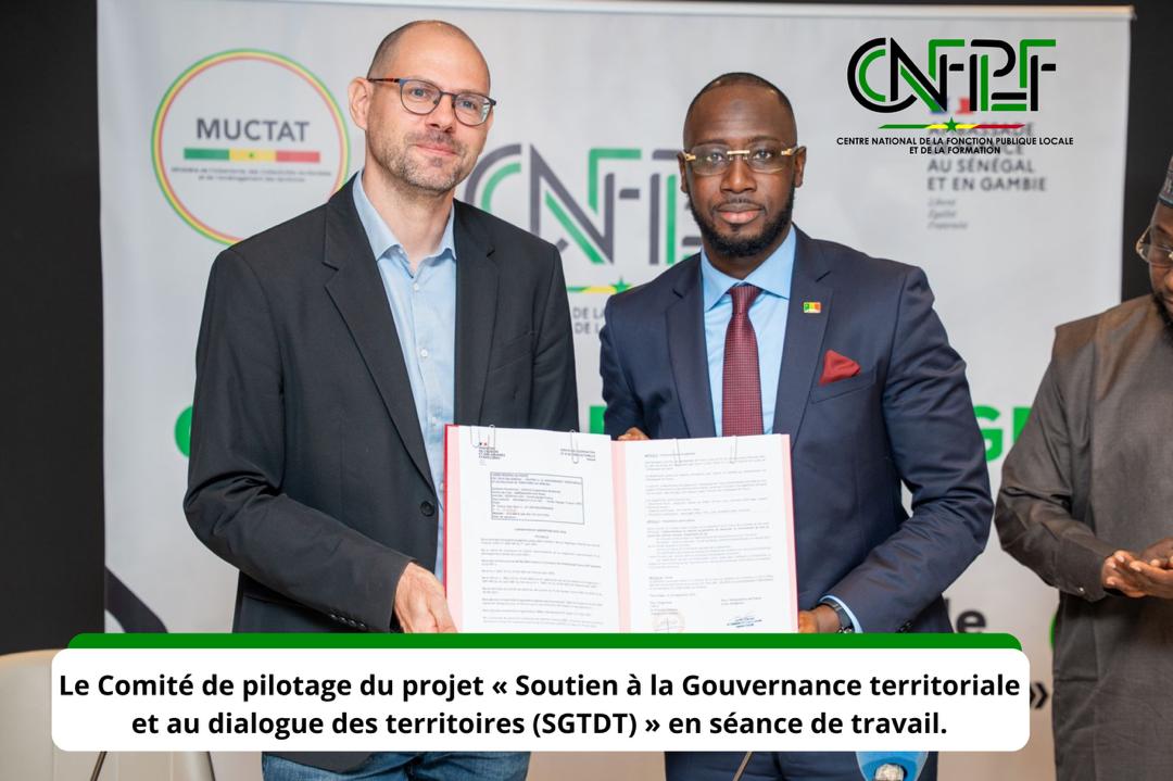 Le Comité de pilotage a été aussi l’occasion d’acter le démarrage de la deuxième phase du projet “Soutien à la gouvernance territoriale et au dialogue de territoires” avec la signature officielle de la convention de financement entre l’Ambassade de France au Sénégal et le Centre national de la Fonction publique locale.